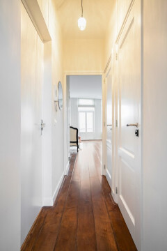 You enter the home via the communal staircase on the third floor - you enter directly into the hallway which gives access to all rooms in the home. Towards the front of the apartment, you will find the spacious and open living room with open layout with the kitchen. The living room has large North-East facing windows which means wonderful morning sun pouring into your living room. The kitchen is fully equipped with a fridge/freezer, stove, microwave/oven combi, dishwasher. The living room also has access to its own private French Balcony overlooking the canal in front. As you follow the hall towards the back of the home, in the hallway you will find the entrance to your laundry room with extra internal storage as well as your washing machine. You will also find the separate toilet from the rest of the bathroom. Through the hallway you have access to the full bathroom, equipped with a walk-in shower, bathtub and washbasin. At the very back of the home, facing the back of the building, you will find your two bedrooms. The two bedrooms are connected with each other via a door. The master bedroom has access to your private balcony facing South-West, which means perfect for an evening glass of wine or coffee! The second bedroom is currently being used as a walk-in closet but is also perfect for an office/guest or babyroom!