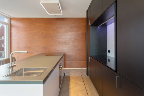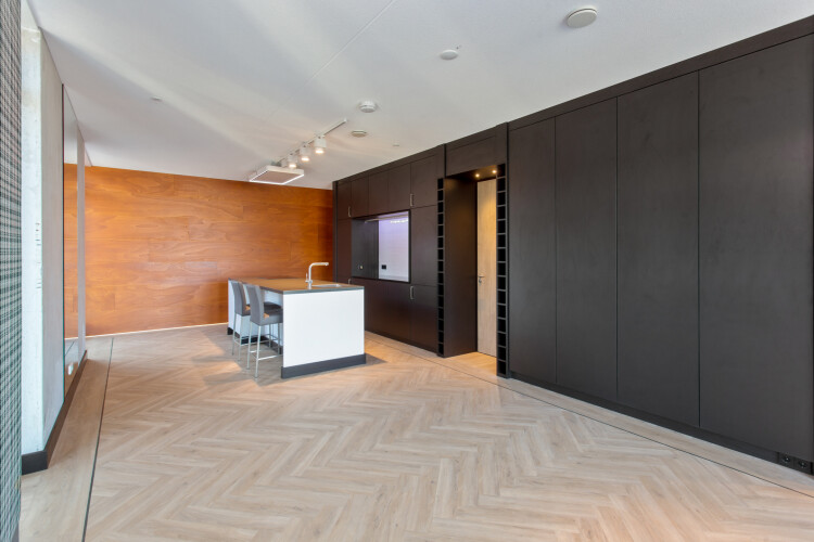 Classification: Central hall with elevator to the first floor. Spacious entrance with a wardrobe closet. A bathroom with shower, toilet and a big toiletcloset. One bedroom, one wall is a wardrobe. Large luxury kitchen with a kitchen island, well equipe with various appliances, dishwasher/oven/microwave. Through the whole house there is a wooden floor. At the ground floor there is 1 extra stockroom for bikes/scooter etc. The elevator will bring you to the stockroom.