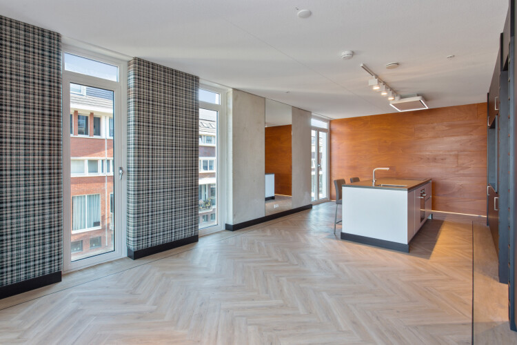 A beautiful bright and spacious apartment (65m2)on the first floor, with one bedroom and a large living room with open kitchen. The apartment is brand new, built in the area The Houthavens.