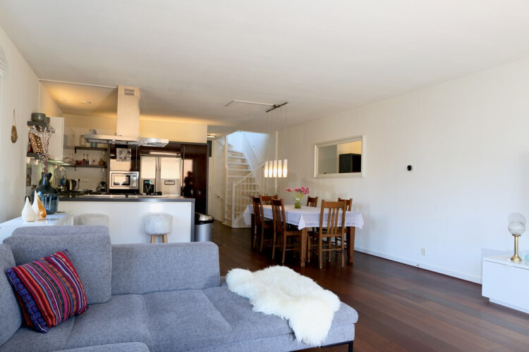The maisonette house is located in the complex 'Serang' built in 1998 on the Javakade in the Eastern Harbour area of Amsterdam. A nice neighborhood with special architecture and a beautifully landscaped public space. The perfect combination of a quiet living environment and an urban character. The area is easily accessible with the A10 on a 5 minutes distance by car. Bus and tram stops are within walking distance, as well as the ferry to Amsterdam North. You can cycle to Central Station in 10 minutes. At a 5 minutes walk you will find shopping center Brazilië with AH, Jumbo, Marqt, Blokker, Etos. An organic market is within walking distance every Wednesday. In the neighbourhood you will also find several restaurants (with terrace on the water); Puerto Pata Negra, PepeNero, De Zuid, Anne & Max. A great place to live and work (at home)!
