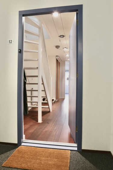 Middels het gemeenschappelijke trappenhuis met lift bereik je dit leuke en vooral goed ingedeelde appartement gelegen op de tweede, derde en vierde etage van het pand. Je betreedt de woning in de centrale hal, welke toegang verschaft tot de badkamer, voorzien van zwevend toilet, dubbele wastafel, bad en aparte douchecabine, en twee ruime slaapkamers met TV. Een slaapkamer wordt opgeleverd met een 2-persoonsbed. Met de trap ga je naar de woonkamer en keuken, hier bevindt zich ook een separaat zwevend toilet.