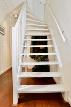 The stairs take you to the fourth floor (third floor) where you find the washing machine and dryer, and access to the spacious roof terrace (48 m2).