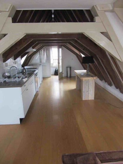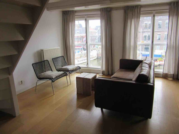 The +/- 110 m2 apartment is situated in a listed monumental building and has a beautiful monumental entrance and is fully furnished in a charming style. The apartment has 3 levels, The master bedroom on the lowest level ( at the 1 1/2 floor) at the backside of the house and is therefore very quite .The bathroom with toilet is connected to the master bedroom. The Kitchen and living area are situated in the front of the building on the second floor and the living has a spectacular 3 window view on the Rokin, the second bedroom is large and situated on the 3th floor and has a high ceiling, but unfortunately no own bathroom/toilet. In short a charming spacious split level apartment with a splendid view on a top location for a very competitive price.