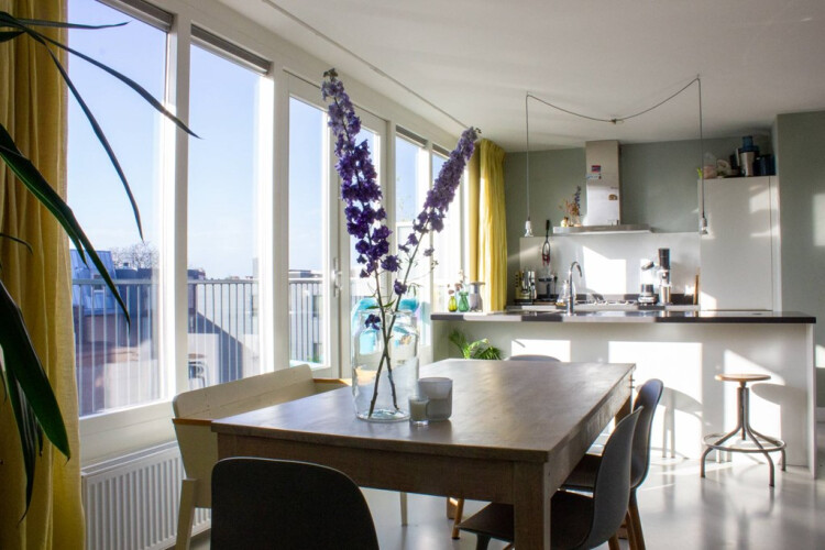 Dit penthouse bevindt zich in een geheel gerenoveerde oude school in een doodlopende straat in de populaire Baarsjes! De buren in het complex kennen elkaar allemaal en er is een gemoedelijke sfeer onderling.