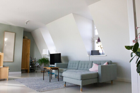 Het is een zeer lichte woning doordat het appartement helemaal boven in gesitueerd is. In het complex zijn er twee gemeenschappelijke ingangen, waarvan er één ook leidt tot een eigen berging van 10 m2 op de begane grond voor bijvoorbeeld een fiets.