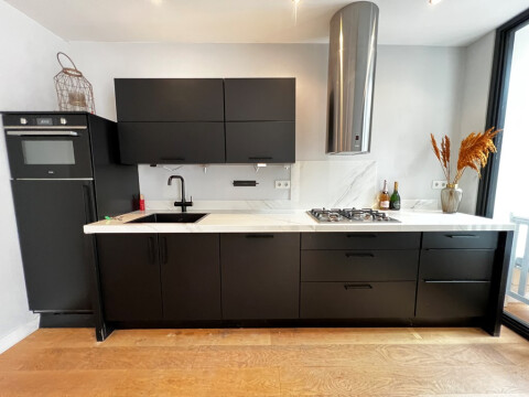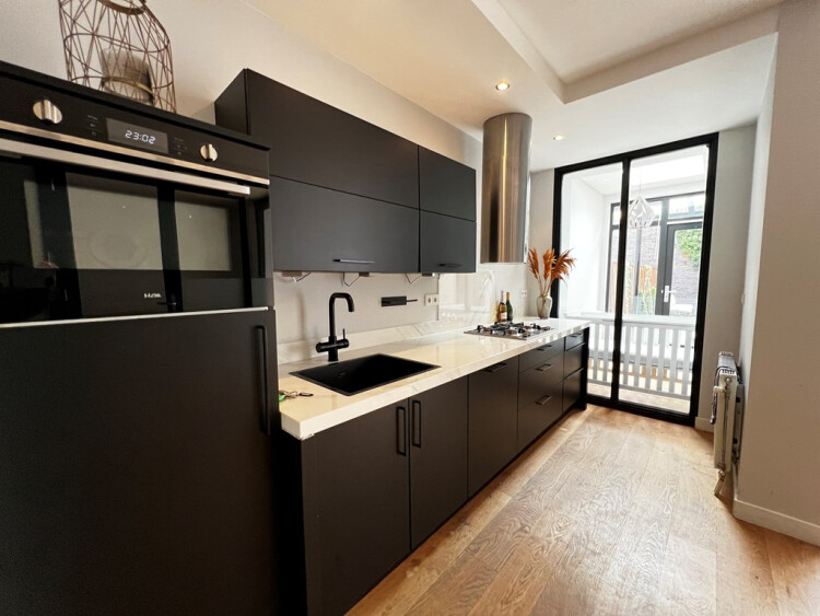 - luxe keuken voorzien van alle nodige inbouw apparatuur zoals vaatwasser, oven/magnetron, koel/vries combinatie en gasfornuis.
