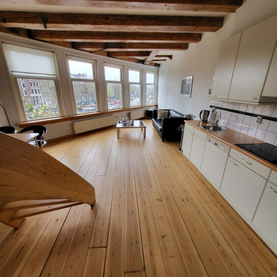 Prachtig gerenoveerd appartement met 5 ramen uitzicht op de gracht.