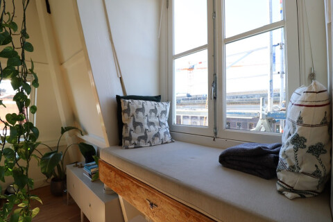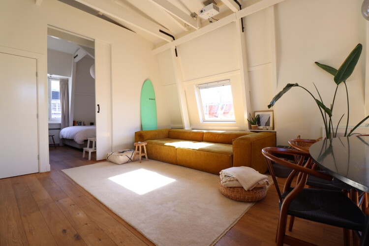In the very heart of Amsterdam, we have a very tasteful 1-bedroom apartment available. The apartment is situated on the top floor of the Prinsengracht, with a ceiling of 4 metres high! You dont have any neighbours next to you. The location is in Amsterdam’s popular 9 streets area.
