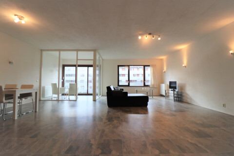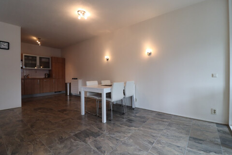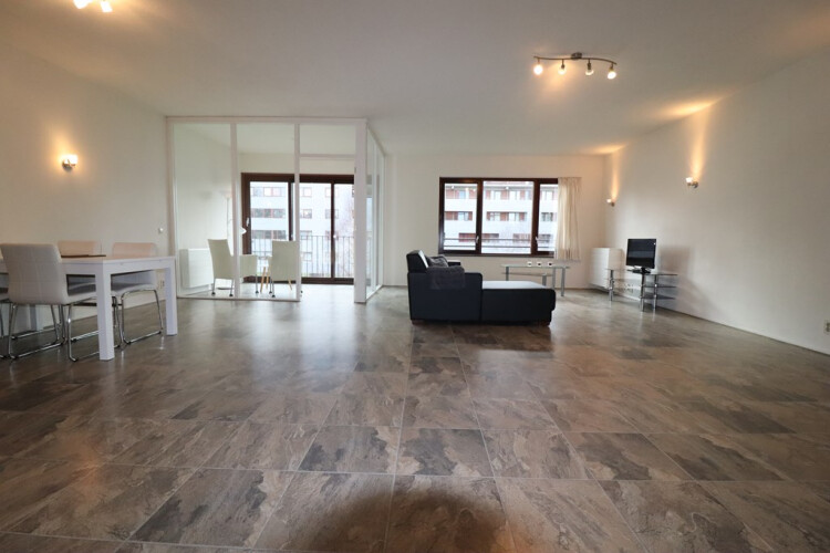 The open plan kitchen is fully equipped with a large fridge-freezer, gas hob, oven, microwave and a dishwasher. The entire apartment has laminate flooring, double glazing and central heating. It has a video entry-phone system. In the basement there is a sizeable (4 m2) storage box. Private parking in the garage is allocated and included in the monthly rental.