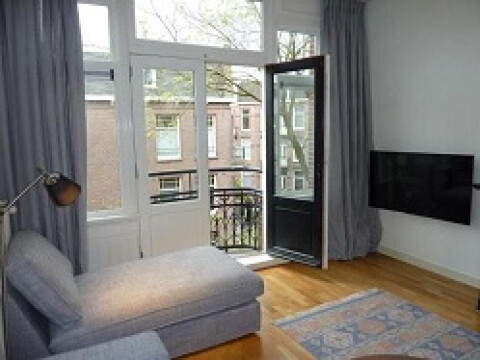 English: Very spacious two room apartment: living room, bedroom, kitchen and bathroom. Located on the Hondecoeterstraat in Amsterdam Oud Zuid. The apartment has new furniture. Both the living room and the kitchen located in the front side of the building have a traditional French balcony. A more spacious balcony located in the back side has evening sun. The apartment is available as of June 1st. Deposit: 1 month rent. Min rent period: 12 months. Subject to three months' notice. Rent1965,00 per month, including gas, water, electricity, tv (Ziggo) and internet (150 Mbit/s).