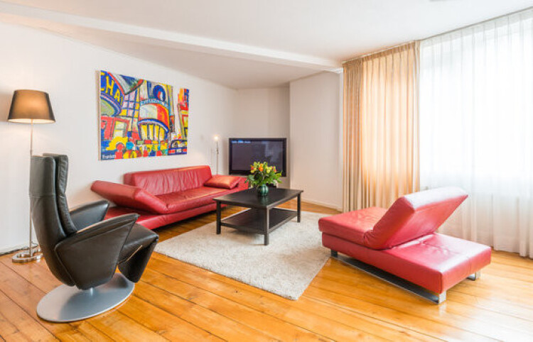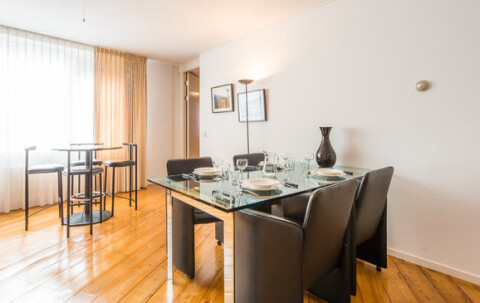 The total surface of the apartment is 102 square meters. 2 large bedrooms, one with kingsize bed, one with twin beds. Lots of storage space in each bedroom. Fully equipped kitchen, all devices brand new. Large bathroom with tub, sink and shower cabin. Washer/dryer. Separate toilet room with sink.
