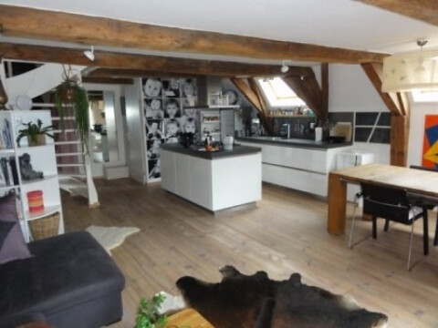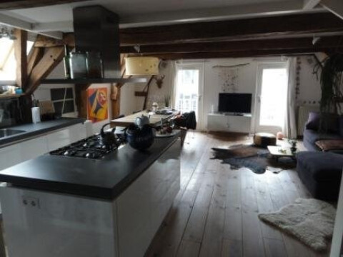 On the two top floors of the building. Nice modern kitchen, the apartment has the original beams what gives it a real Amsterdam feeling. Good-sized bedroom in the top of the building. Washer- dryer, bathroom with a bath.