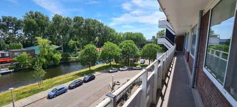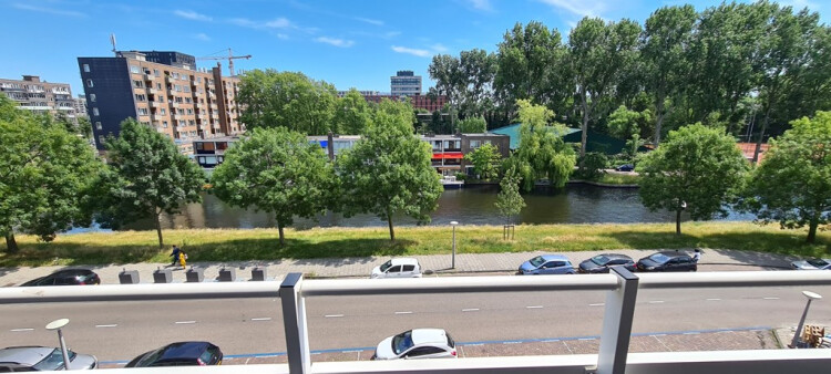 Nice new renovated 2 simular sized bedroom apartment with a beautiful view, a balcony, bathroom with shower, separate kitchen with all equipment, wood floor,elevator, trams top 25 meters, shops close , within 15 minutes in the centre. Heating cost plus € 50,00 (will be paid by owner to VVE)