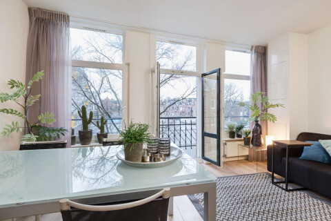 Prachtig gemeubileerd 3-kamer appartement van ca. 55 m2 gelegen in de Bankastraat in Amsterdam, beschikbaar per direct voor € 1.595,- per maand exclusief.