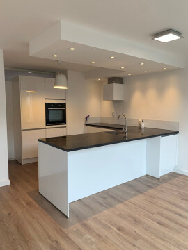 Tweede verdieping: entree; hal met trapberging en toilet, ruime woonkamer met half-open moderne open keuken (v.v. alle benodigde apparatuur), ruime 3e slaapkamer