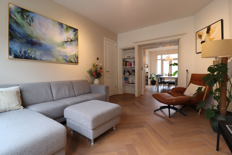 Fantastic spacious furnished apartment for rent in a nice neighborhood, close to the Vondelpark in Amsterdam. There is a great connection with public transport and car. Supermarkets and shops are at walking distance, and many restaurants to be found in the area. The apartment is situated on the first and third floor. The first floor has an nice lay out with livingroom, dining room, half open kitchen and study room. On the third floor is the masterbedroom and bathroom, one extra room suitable as a second bedroom or guestroom / studyroom. So perfect for a couple when both working from home, or small family.
