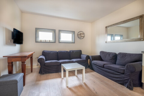 Per 1 april te huur een gemeubileerd 2-kamer appartement, gelegen de bovenste verdieping. Het appartement is voorzien van 1 slaapkamer, een moderne open keuken en een heerlijk zonnig dakterras aan de achterzijde.