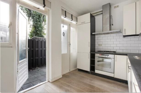 This lovely unfurnished 2-room apartment (approx. 50 m²), with wooden floor and garden with shed, is on the ground floor of the building and has recently been completely renovated. The Vondelpark is only a few minute walk away and the Leidse Square is only a few minutes by tram (Ring-road is also close-by). Lay-out: The light living room is situated at the front side of the apartment and has a open plan kitchen. The kitchen has all the necessary built-in appliances (dishwasher, oven, fridge/freezer combination, gas top stove and extractor fan). The bedroom is at the back and give access to the garden. There is a separate toilet, next to the kitchen. This apartment is close to the Vondelpark in the baarsjes on walking distance from Kinkerstraat and Surinameplein with all the bus and tram connections to be quick in the city centre or Schiphol.