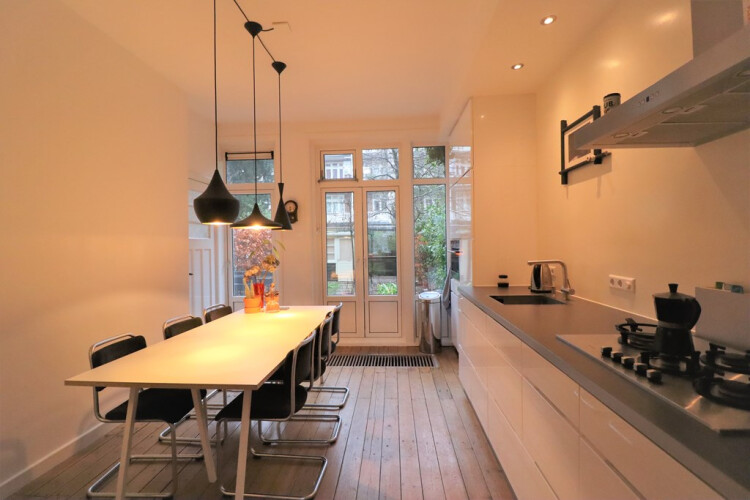 Spacious and bright 1-bedroom apartment for rent in the popular area ‘de Baarsjes’ in Amsterdam. Located on the ground floor with huge 80m2 garden. The apartment is located close to Vondelpark, Overtoom, shops, restaurants, bars and supermarkets. The apartment is easy to reach by public transport and car. The apartment offers a lot of original details and 3m high ceilings.