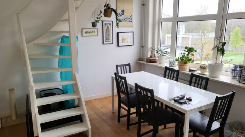 Groot gerenoveerd appartement met 2 gelijkwaardige slaapkamers waarvan 1 op 3e verdieping en een op 4e verdieping, woonkamer met openzijkamer welke ook geschikt is als eetkamer gedeelte of study.
