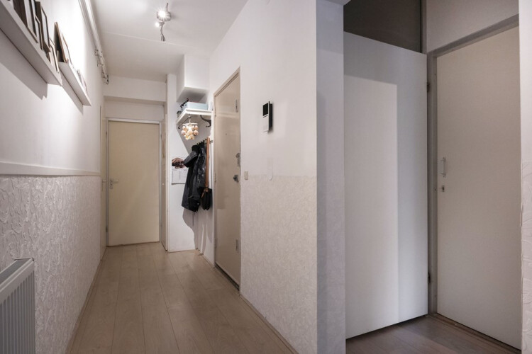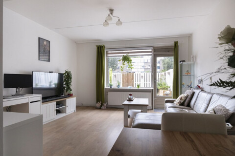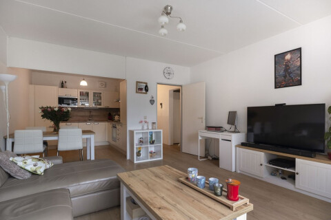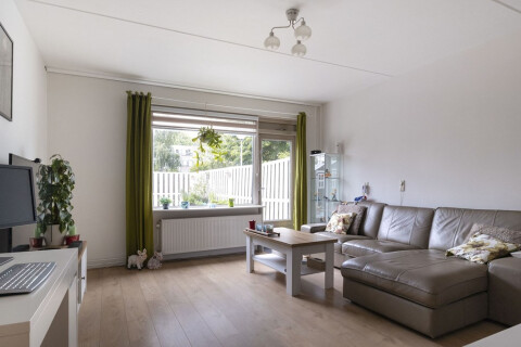 Entrance apartment through the hall. From the hall there is access to the living room. The bright and garden-oriented living room has access to the semi-open kitchen in a corner unit and is equipped with a 5-burner gas stove with wok burner, extractor hood, oven, microwave and a dishwasher. The spacious and well-maintained garden can be reached through the living room. The backyard with back entrance is located on the sunny southwest. This makes it wonderful to stay in the sun from noon to sunset with a snack and / or drink! The house also has 2 spacious bedrooms, one located at the front and one at the rear of the apartment. The bathroom has a bath, shower, washbasin and towel radiator. There are also a toilet room with washbasin, extra storage space, meter cupboard and central heating installation system.