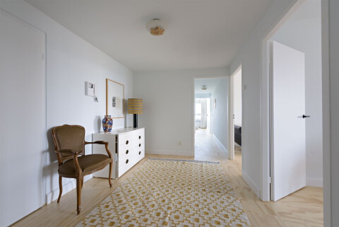 Master bedroom with fitted wardrobe and second bedroom at the end of the hallway. Both bedrooms provide an inspirational view overlooking the skyline of Amsterdam and Rembrandtpark.