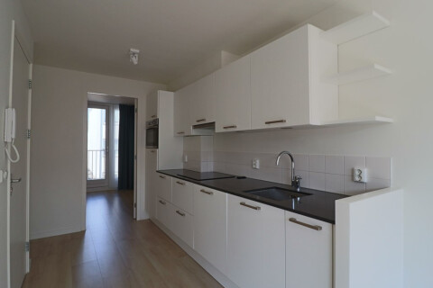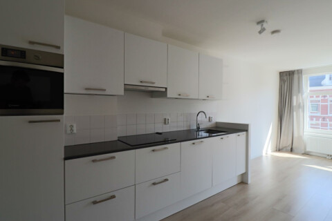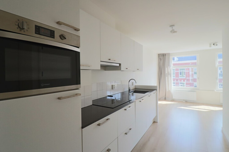 Unfurnished 1 bedroom apartment with open kitchen, bathroom, livingroom, bedroom and balcony for rent at the Albert Cuypstraat (at the market).