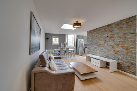 Layout: Shared entrance with stairs to the 3rd floor. Very spacious and bright living room with open kitchen. The kitchen is equipped with a fridge, freezer, combi oven, dishwasher and a gas burner.