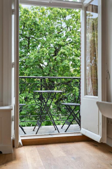 Het appartement op de derde verdieping heeft vrij uitzicht over het park vanaf een gezellig balkon. De grote hoge ramen laten altijd veel licht binnenstromen en als men de mooie oude schuifdeuren naar de slaapkamer open zet, is er van voren naar achteren een zee van licht.