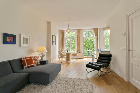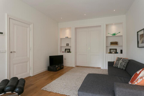New and very light 1-bedroom apartment with balcony and free view on the Sarphatipark, kitchen with built in appliances, bathroom with tub and separate walk in shower, 2 toilets, laundry area, wooden flooring, on A1 location!