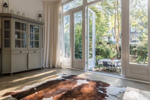 This unique spacious and very characteristic 100sqm apartment offers a private ground floor entrance in a 50-meter distance from the lively Sarphatipark in Amsterdam.