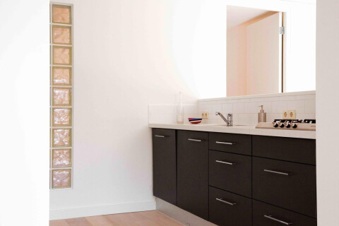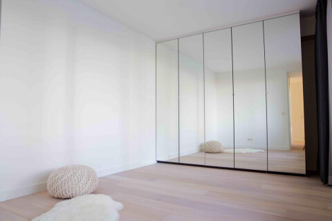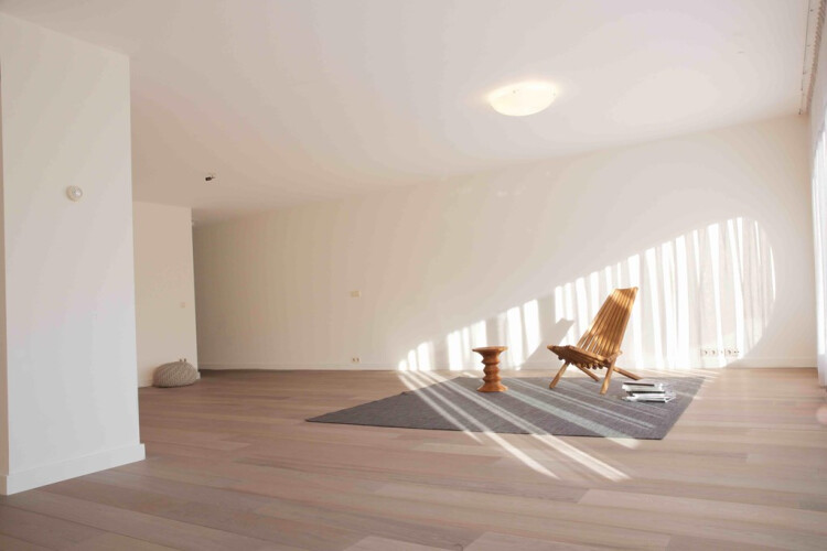 A very modern apartment on the 4th floor on Sarphatistraat accessible by elevator, is unfurnished and has parquet flooring throughout the entire apartment & curtains in front and back of the apartment. It has a large living room +/- 50 m2 with a very large oval window in the front and an open modern kitchen with all appliances: hood, stove, dishwasher, oven and refrigerator with 3 freezer drawers.