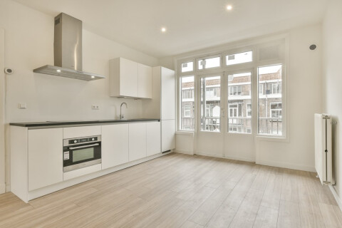 De woonkamer met open keuken is een doorzonkamer met grote raampartijen waardoor er veel daglichttoetreding is. Via de grote ramen heeft u een fantastisch uitzicht op de gezellige Maasstraat. De moderne keuken is voorzien van vaatwasser, afzuigkap, ijskast, vriezer en inductie kookplaat.