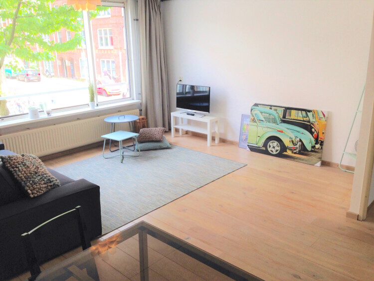 This Apartment has one big bedroom with access to the balcony. The kitchen, living, bathroom and toilet are all separate! It is approximately 60 square meter and is fully furnished with all mod-cons: so including -Dishwasher -Washing/Drying machine -Microwave -Refrigerator -Flat screen TV. And on top of this all initial living requirements are also present; Bed and kitchen linens, towels, iron equipment, Nespresso. . . you name it. This is all provided for to make sure you can move in straight away.