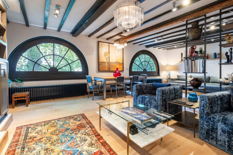 The extra large bedroom includes a luxurious American king-sized bed and very spacious en suite master bath. Authentic, solid oak floors run throughout, framed by swanky furnishings and original artwork. The bedroom includes a separate sitting area which could serve as a home office or cozy chill-out space. A patio adjoins the master bathroom providing sunlight and fresh air. Centrally located between the Keizersgracht and Prinsengracht, the apartment merges Amsterdam’s iconic historic ambiance with style and convenience.