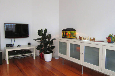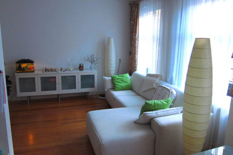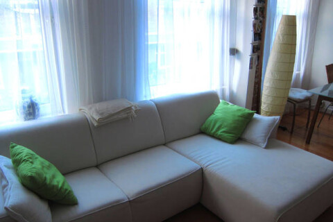 Licht, volledig gemeubileerd 2.5 kamerappartement van ca. 60m² gelegen op de eerste verdieping met een balkon (in de ochtend zon) over de gehele breedte aan de achterzijde van het pand.
