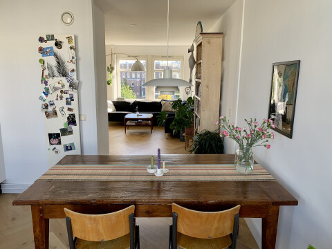 The apartment is located on the Afrikanerplein on a quiet, child-friendly, street in Amsterdam East with green gardens at the front door and a cozy atmosphere.