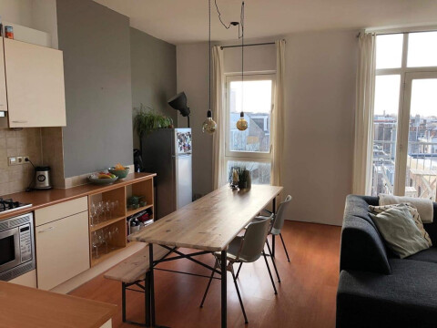 Ruim en licht appartement met 1 slaapkamer in het stadsdeel De Pijp, met balkon én groot dakterras.