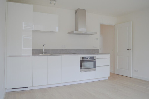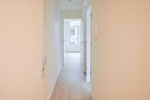 Via de hal heeft men toegang tot alle vertrekken. Aan de voorzijde is de woonkamer gelegen met open keuken, die zich kenmerkt door veel lichtinval. De open keuken welke is v.v. een inductiekookplaat, vaatwasser, combi/magnetron, koelkast en vriezer. De 1e slaapkamer bevindt zich aan de achterzijde met aangrenzend de luxe badkamer v.v. een inloopdouche, luxe wastafel met meubel en spiegel. Het balkon bevindt zich aan de achterzijde.