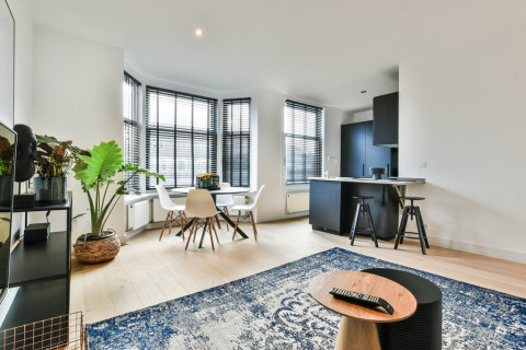 Stijlvolle gerenoveerde en gemeubileerde woning met twee slaapkamers, dakterras en balkon in de Stadionbuurt, Amsterdam Zuid.