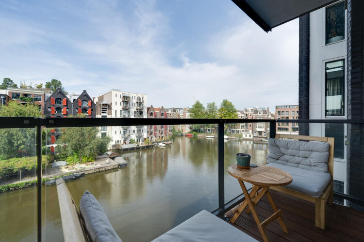 Modern apartment with two showers (one en suite) and balcony with amazing view over quiet canal.