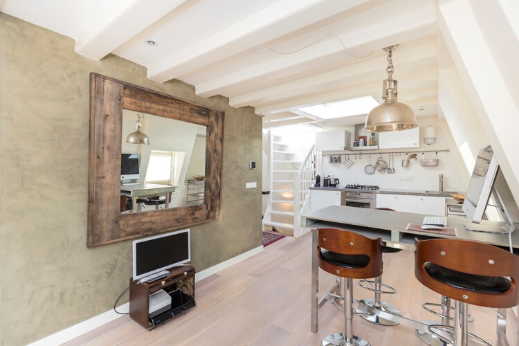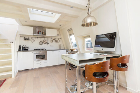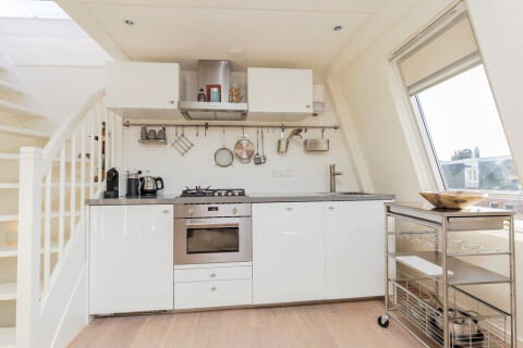 Bright and cozy 1-bedroom apartment for rent in Amsterdam old West with roof terrace. Shops, restaurants and bars can be found within minutes walk. Public transport connection is perfect, tramlines are on walking distance and the apartment is easy to reach by car.