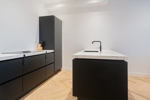 Through your private entrance on the ground floor access to the hall, from here you enter the bright and spacious living room with open kitchen.