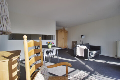Entrance hall with toilet and sink, Spacious living room overlooking the canal. Open Kitchen with all appliances. Bedroom with double bed and wardrobe, bathroom with shower and washbasin, washing machine. through the bedroom access to the private terrace situated northeast.