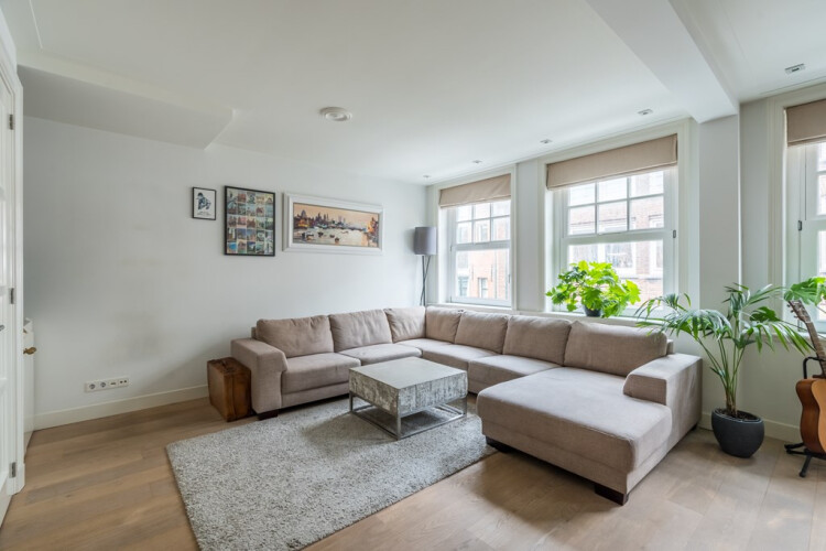 The home is located on the second floor accessible via the communal staircase. You enter the apartment into the hallway which gives access to all rooms in the home. Towards the front of the home you will find the spacious and bright living room and kitchen which share an open floorplan. The living room looks out over to the Noorderstraat with large windows. The kitchen is fully equipped with a large kitchen island, perfect for hosting! Along with a gas stove, ventilation, dishwasher, microwave/oven combi, etc. The separate toilet is also accessible via the hallway. As you proceed towards the back of the home you will find the two bedrooms. The master bedroom with an ensuite bathroom which is fully equipped with a walk-in shower, bathtub, double sink and extra toilet. The bathroom also has a private balcony, along with each bedroom having their own respective balconies as well, totaling 3 balconies in the home! The second bedroom is perfect for a study, home office or a guest room!