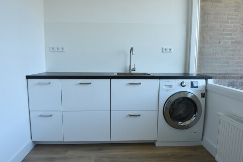 Layout of the apartment: In the hall you’ll find a restroom with little sink and mechanic ventilation with timer. From the hall you can enter the bedroom, livingroom and modern kitchen. In the kitchen you’ll find a built-in washingmachine/dryer, Dishwasher, combi-microwave oven and stove with extractor.
