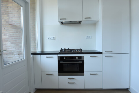 Indeling: Entree, hal met verlaagd plafond en inbouwverlichting, ruime woonkamer met toegang tot balkon en prachtig uitzicht op de binnentuin. Luxe nieuwe keuken, compleet uitgevoerd inclusief koel/vrieskast, combimagnetron, gaskookplaat, afzuigkapkap, was/droogcombi en vaatwasser. Aansluitend op de keuken het 2e balkon aan westzijde. Separate wasmachine-/droogruimte. Slaapkamer met 2 inbouwkasten. Geheel nieuw ontworpen badkamer met doucheruimte, wastafelmeubel met spiegelkast en verlichting, handdoekradiator en plafond met inbouwspots. Ruime eigen (fietsen)berging op de begane grond.