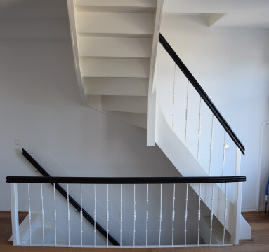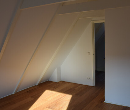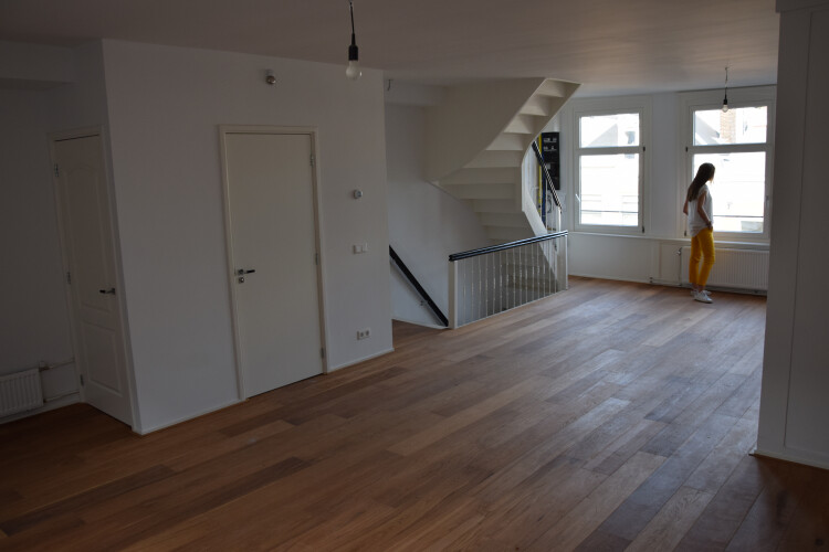 Ruime, lichte woning met hoge plafonds en veel ramen.